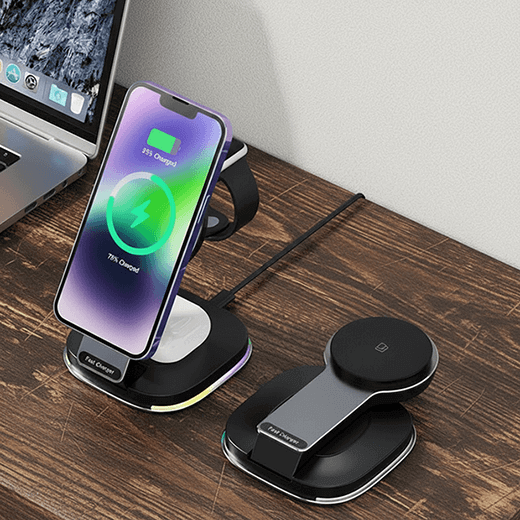 We offer wireless mobile device chargers with diverse features for various scenarios, including magnetic attachment, foldable designs, and support for simultaneous charging of multiple devices (3-in-1).